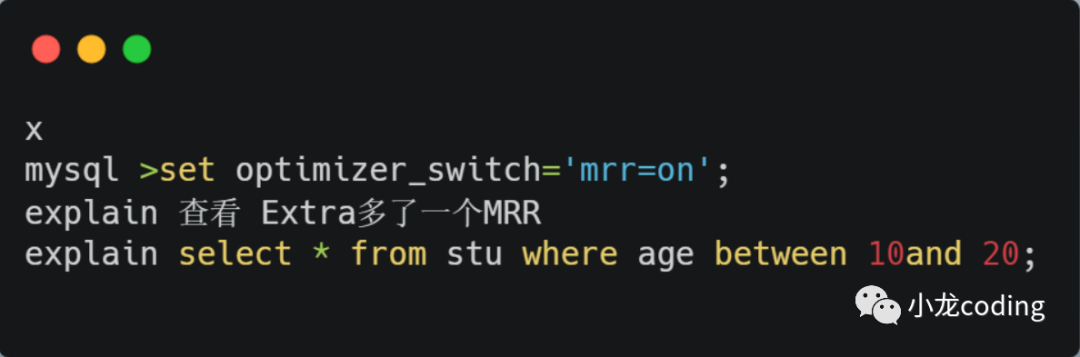 原理:MRR 【Multi-Range Read】将ID或键值读到buffer排序,通过把「随机磁盘读」,转化为「顺序磁盘读」,减少磁盘IO,从而提高了索引查询的性能。