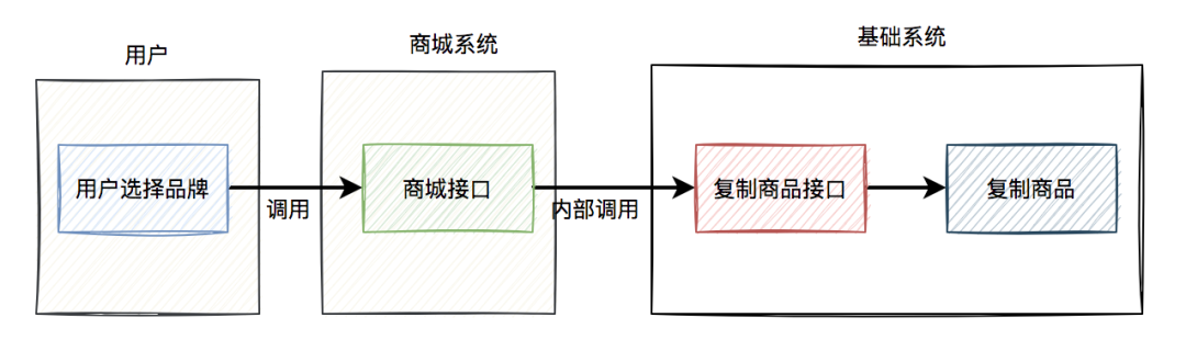 当时的流程图如下:如果每次复制的商品数量不多,使用同步接口调用的方案问题也不大。