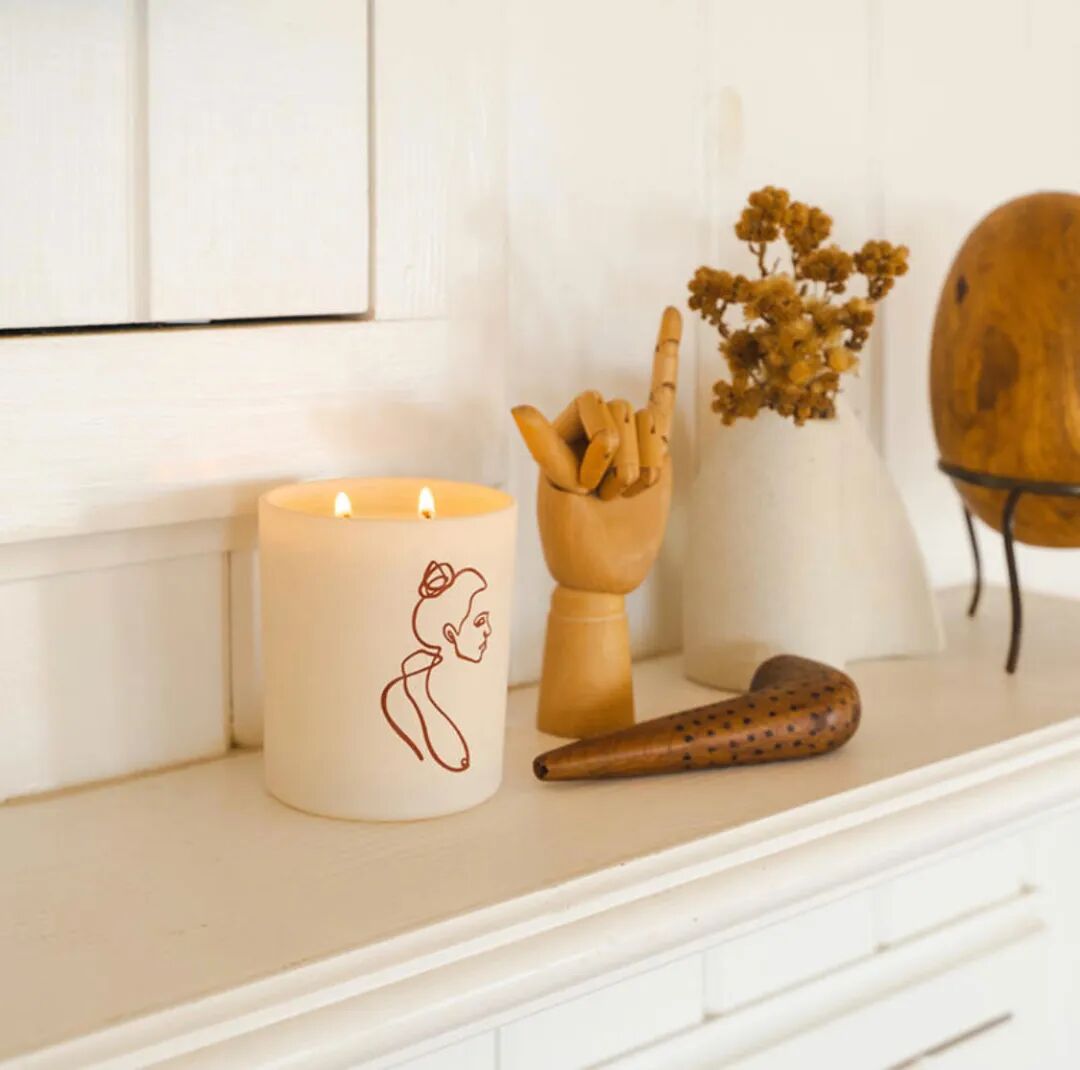与加州艺术家Allison Kunath合作的联名蜡烛也很值得入手~瓶身是雾雾的莫兰迪粉,绘有艺术家用一条不间断的线条,勾画出的女性轮廓。