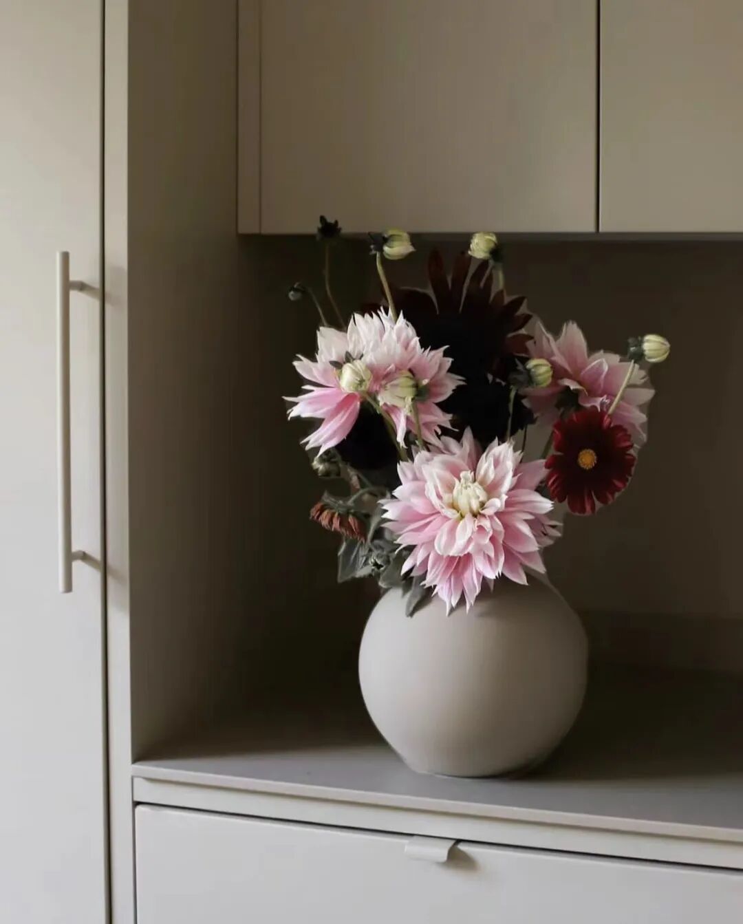 难怪那些很懂生活(和拍照)的博主,无论早起第一杯咖啡,还是晚餐,都会用到鲜花。好看的各种色彩,搭配相衬的花瓶,能营造出这样一种氛围——