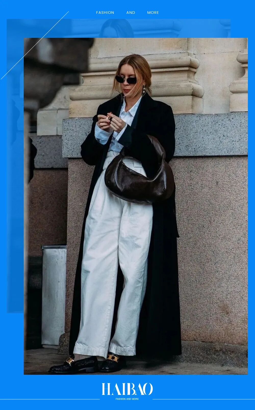 补充一条冬天穿白裤子的Tips:面料绝不能是轻飘飘的,不然在大衣、羽绒服这些有份量的单品衬托下,容易显廉价。