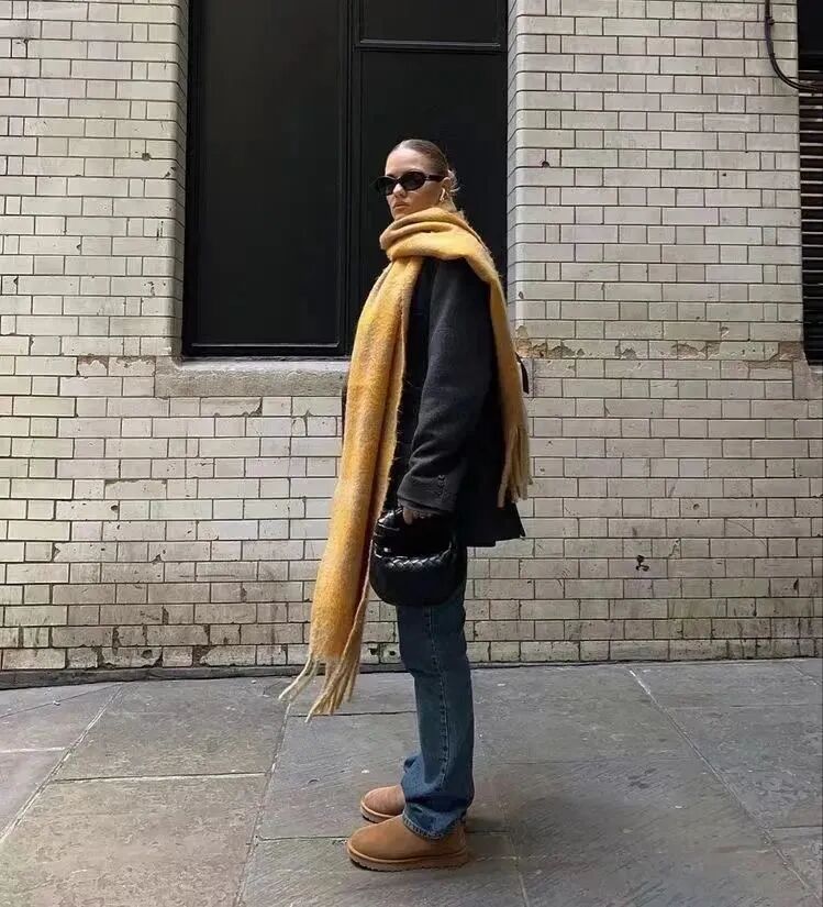 这份爱意不是因为UGG也可以时髦,它总归是不如对立面的高跟鞋、尖头靴凹造型高效实用:瞬间就能拉伸身高,气场也直达2米。