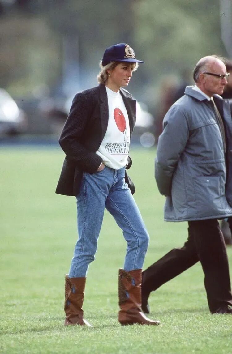 要说90年代icon戴妃的休闲look和现在有什么不同,最大的区别就是脚上各式各样的牛仔靴。