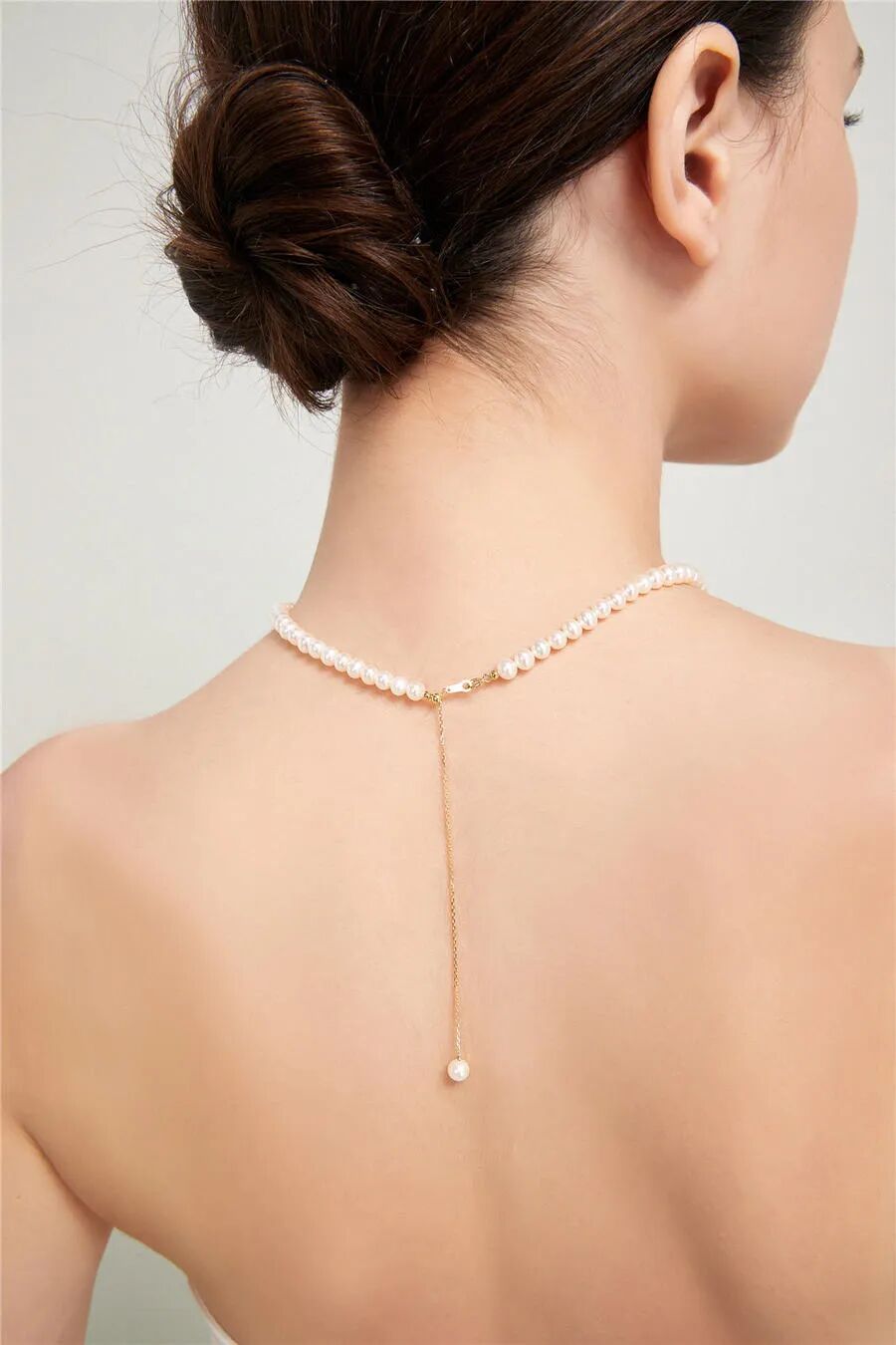18K金延长链的末端,有一颗小珍珠垂下来,可以在胸上的位置或是后颈处,又会比一般珍珠项链更别致。