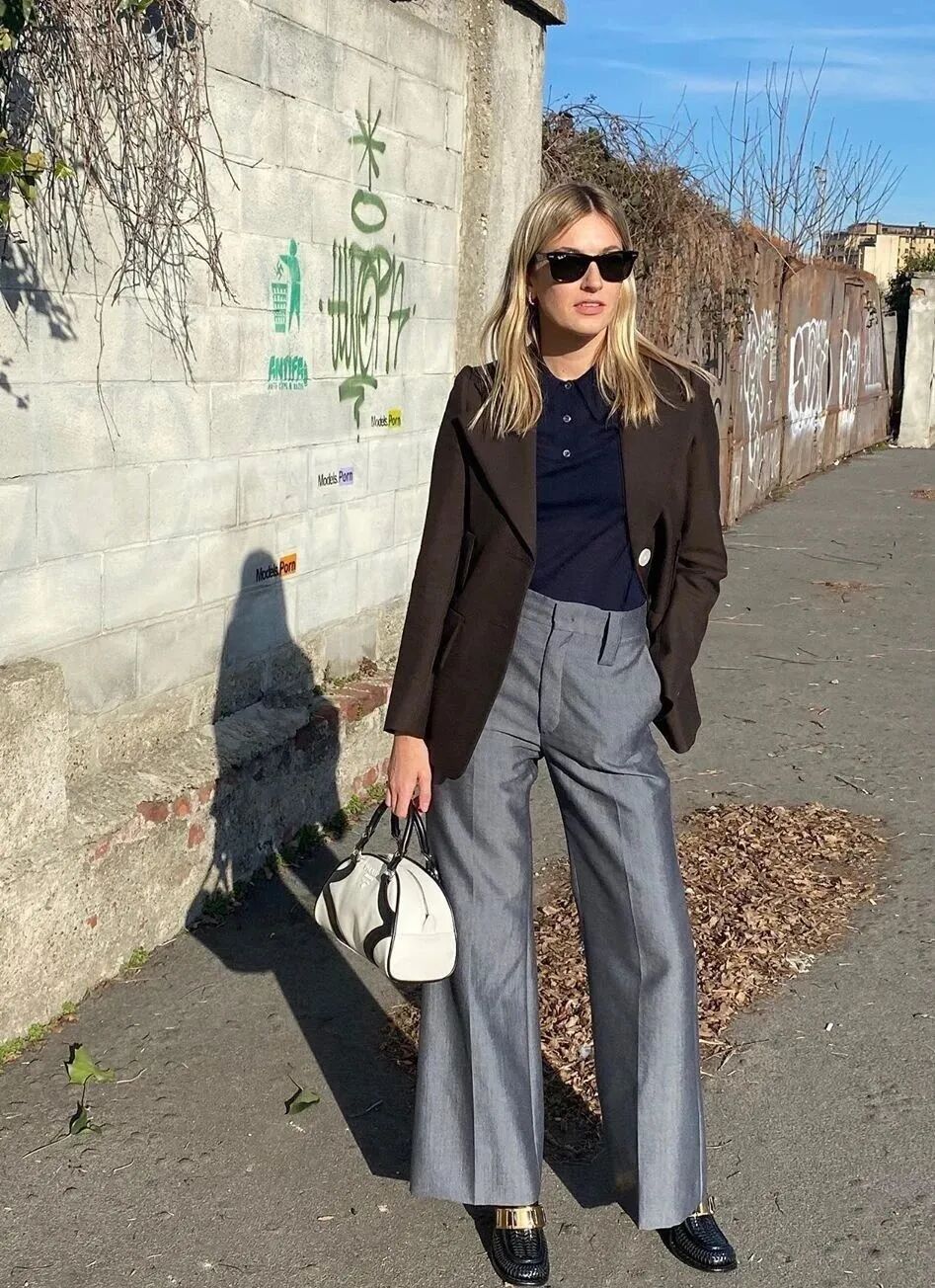 不过,这两年的polo衫跳出了爹味的设定,也可以像衬衫那样单独穿,搭配相对正式的西装、西装裙、西装裤,就是职场精英女会选择的四件套。