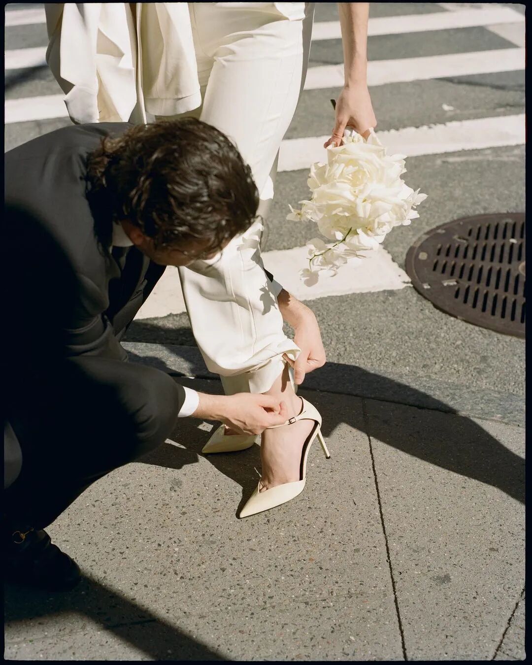 25岁的她最近和男友Adamo在纽约举办了婚礼。该怎么形容这个婚礼呢~~就完完全全是Christie的风格!她没有选择常见的婚纱礼服,而是“组装”了一套三件式西装。白色外套是Stella McCartney的vintage,内搭的马甲同样是The Row的“中古”,搭配Frankie Shop的白色西装裤、YSL的二手高跟鞋。是不是完全出乎你的意料??![]()