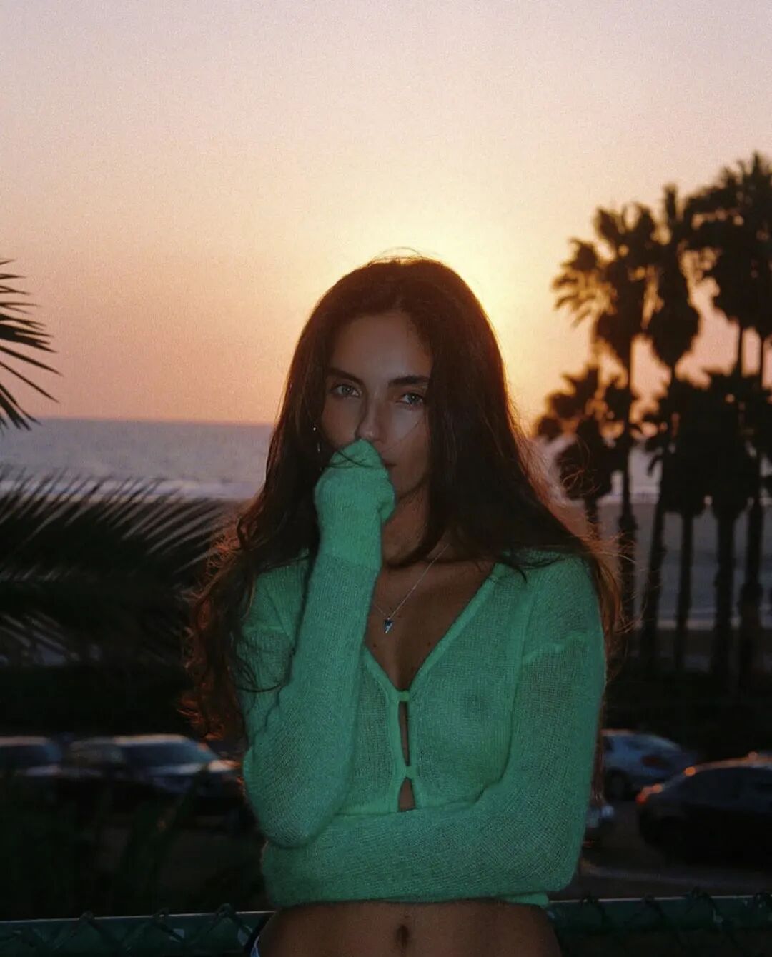 这种摩登的生活方式,却无法带给Laura心灵上的归属。一年半前,她打包好十几个纸箱,搬去了洛杉矶。加州的阳光、海滩和公路旅行,让Laura重新获得了冒险带来的快乐。她的风格随之发生变化,穿上超短Top、迷你裙,搭配凉鞋或西部靴。Laura的浓颜,发亮的小麦肤色,海藻般的深色长发与阳光沙滩、落日、金色首饰、泳衣完美相衬,正是她“一半性感+一半狂野”的体现。![]()
