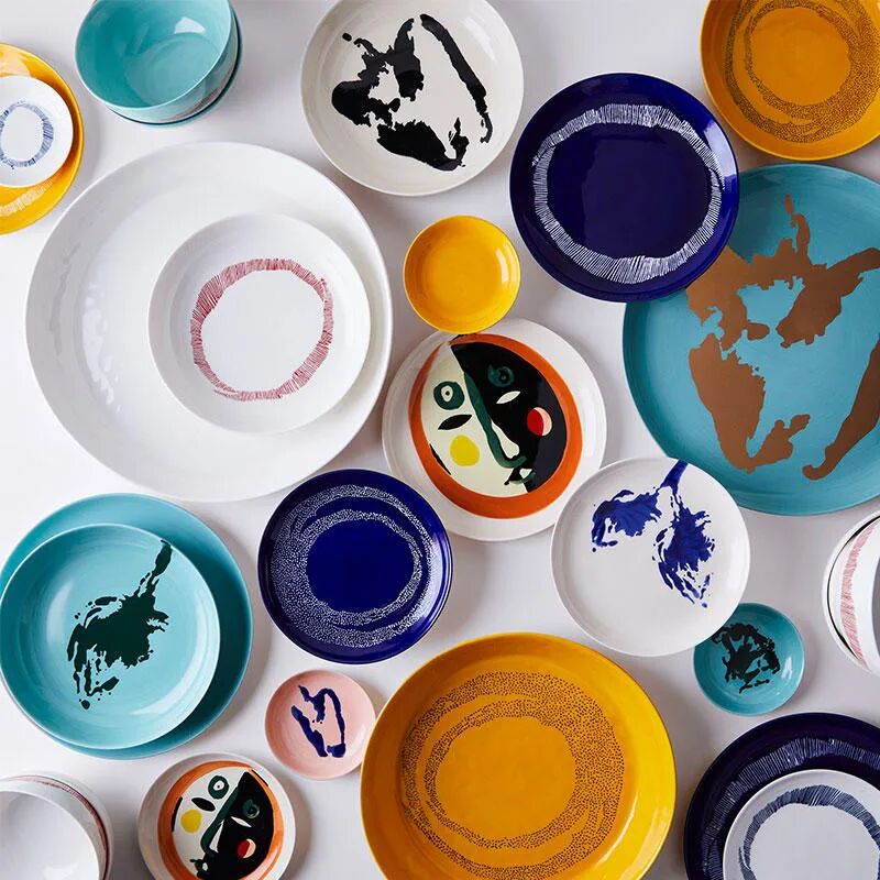 艺术家用朝鲜蓟、青椒和花椰菜制作出抽象的印花,与粉色、白色、青蓝、宝蓝色的餐盘结合,缤纷亮眼的色彩能带来欢乐心情,同时很有艺术性。![]()