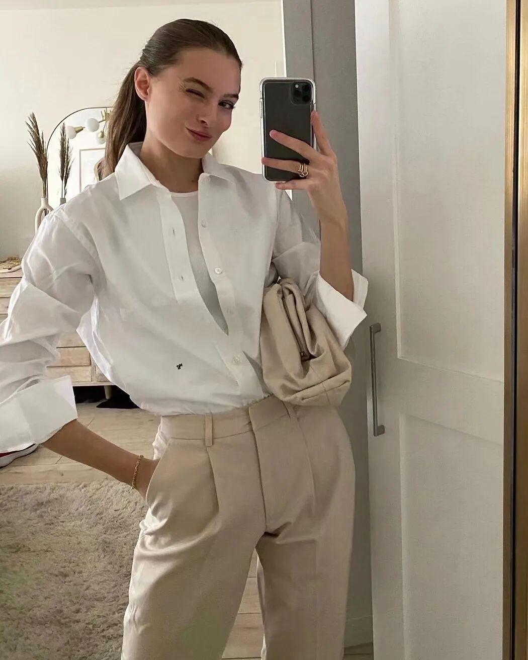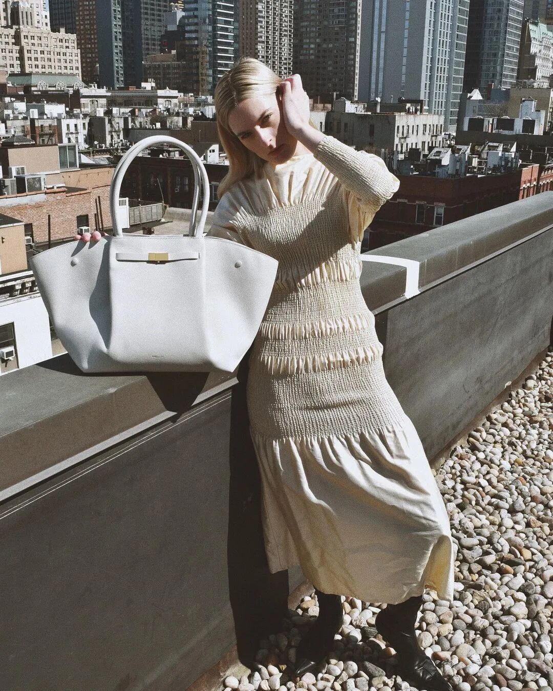 来自纽约的Christie Tyler——同时也是一家售卖古着家居、珠宝和配饰的线上商店Vollective的主理人。因为她认为,一个人的住所可以反映她的风格(这个观点在我们之前的文章里,也聊过很多次)。所以,在Christie公寓中随处可见的中性色调(米色、黑色、白色)、舒适自然的纹理、做旧陶器、古着家具……制造出宁静、优雅的侘寂氛围。体现在服装上就是柔和的色调,简练的线条、轮廓,以及舒适而简约的设计。但在确立这种高级审美以前,Christie Tyler也有过很长一段时间的时尚迷茫期,直到她去纽约念了利姆时尚商业管理学院(简称LIM学院),才慢慢找到自己的风格。像她自己说的:“纽约塑造了我的风格,让它变为一种舒适、毫不费力的时髦。”![]()