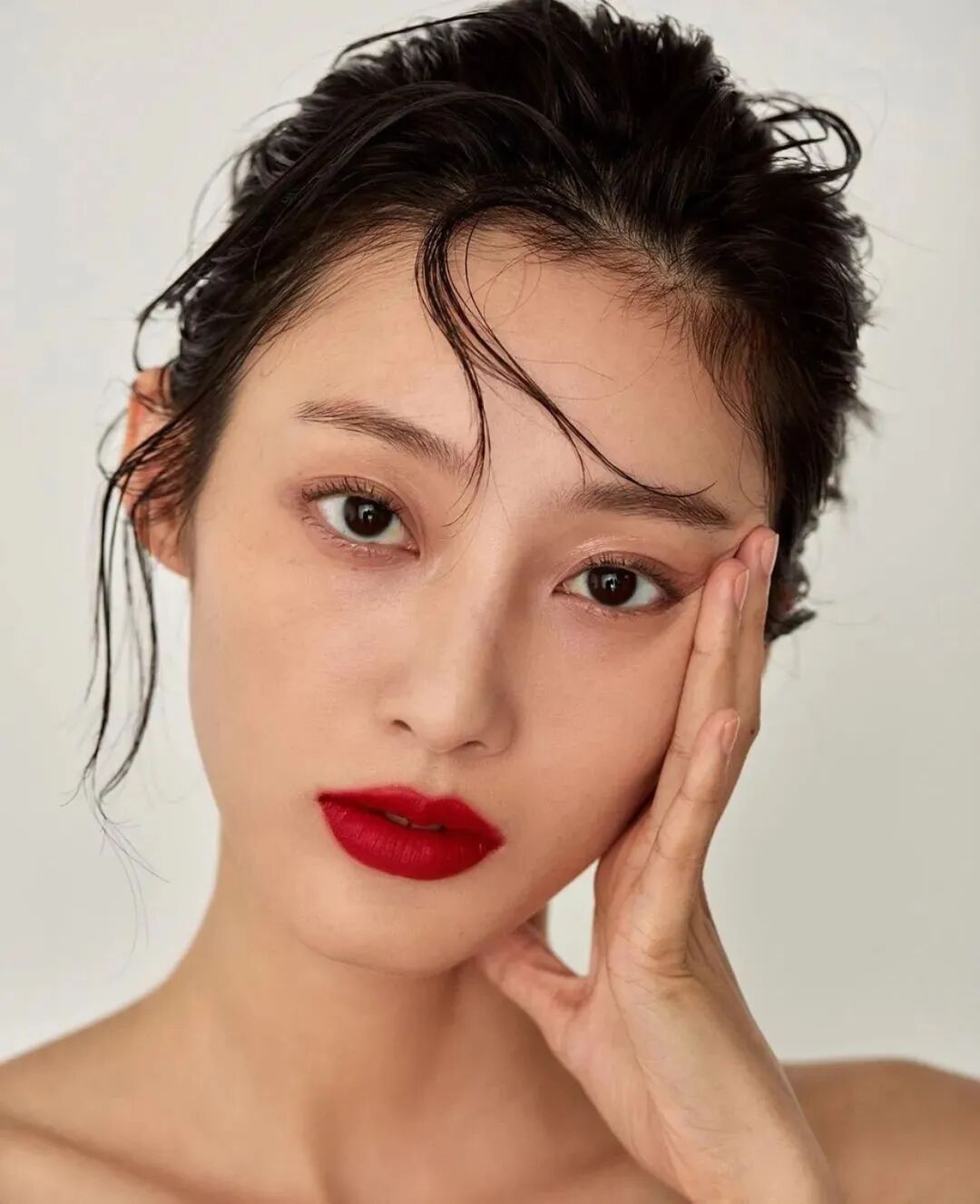 前段时间看张元英的化妆师分享同款妆容,全程使用高光、珠光产品不说,妆容最后一步还把亮闪闪的唇膏抹到脸上。🙂️