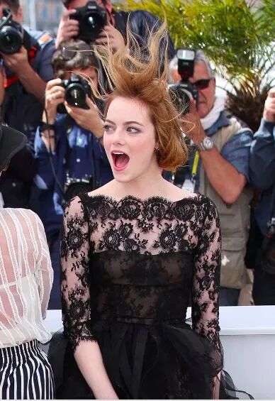 emma stone的“美女惊讶”算得上是女生们面对大风时最真实的写照吧。内心os:怎么回事,还没美翻全场呢就被风打翻了??