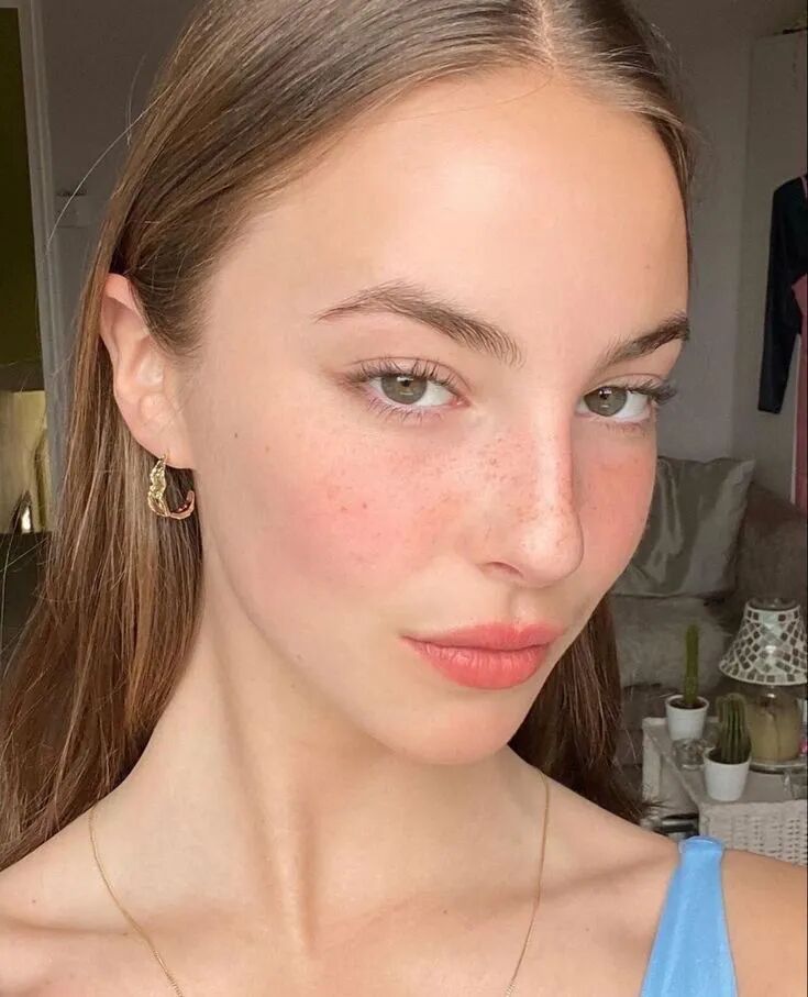 皮肤上细腻、水润、透亮,映出微光感;妆容上追求自然、光泽的质感