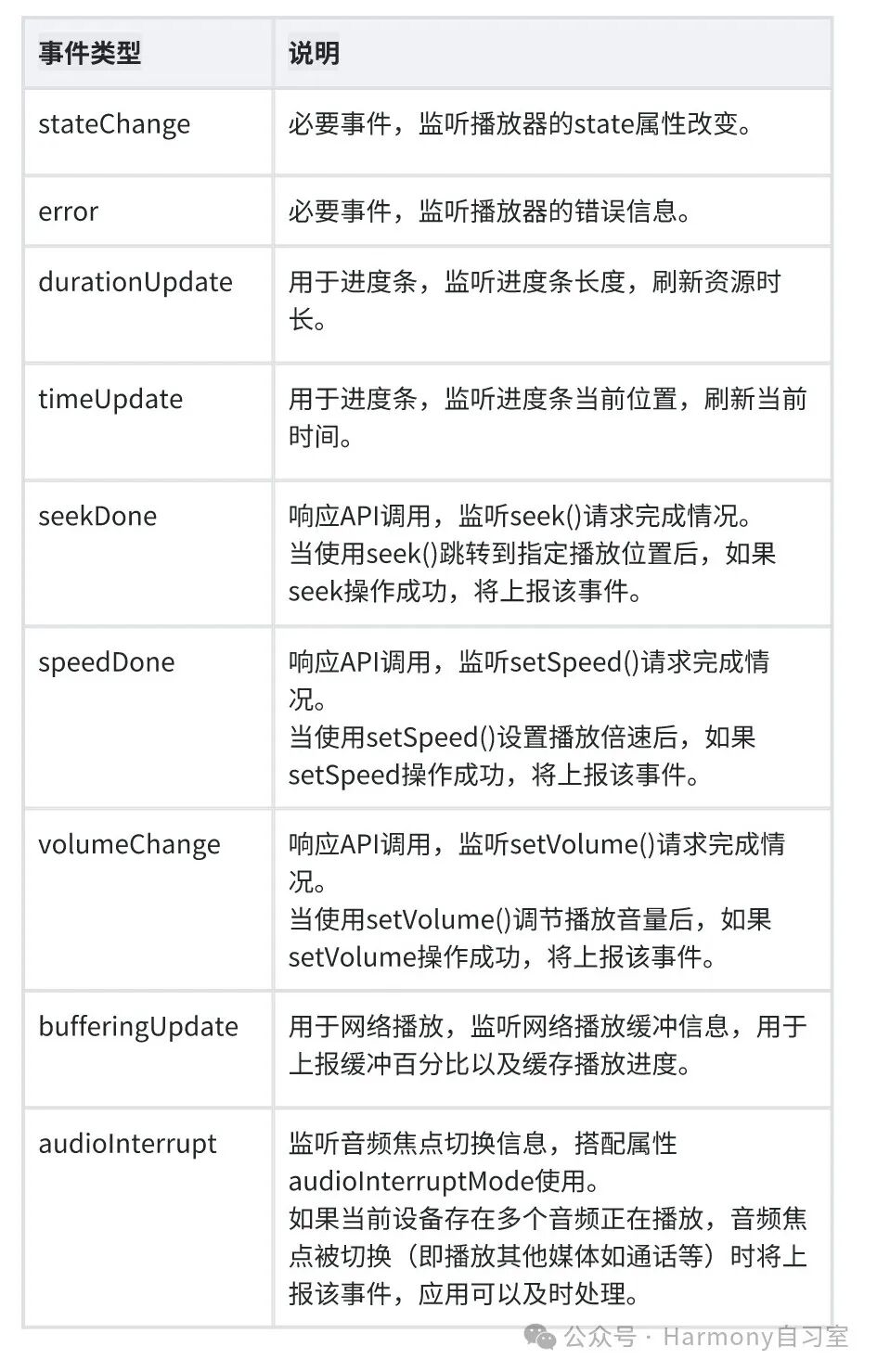 HarmonyOS上支持的Playback接口: