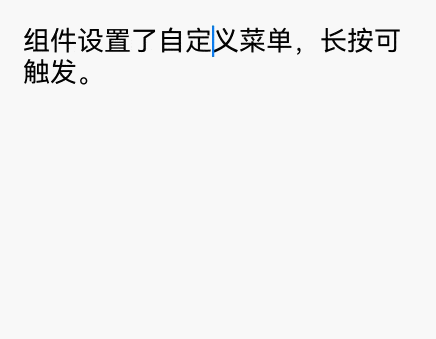 RichEditor(this.options).onReady(() => {this.controller.addTextSpan('组件设置了自定义菜单,长按可触发。', {style: {fontColor: Color.Black,fontSize: 18}})}).bindSelectionMenu(RichEditorSpanType.TEXT, this.SystemMenu, ResponseType.LongPress, {onDisappear: () => {this.sliderShow = false}}).width(300).height(300)SystemMenu() {Column() {Menu() {if (this.controller) {MenuItemGroup() {MenuItem({startIcon: this.theme.cutIcon,content: "剪切",labelInfo: "Ctrl+X",})MenuItem({startIcon: this.theme.copyIcon,content: "复制",labelInfo: "Ctrl+C"})MenuItem({startIcon: this.theme.pasteIcon,content: "粘贴",labelInfo: "Ctrl+V"})}}}.radius(this.theme.containerBorderRadius).clip(true).backgroundColor(Color.White).width(this.theme.defaultMenuWidth)}.width(this.theme.defaultMenuWidth)}