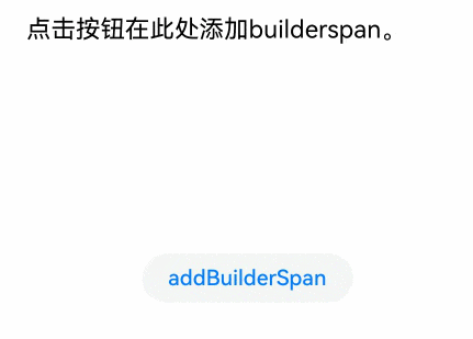 TextBuilder() {Row() {Image($r('app.media.startIcon')).width(50).height(50).margin(16)Column() {Text("文本文档.txt").fontWeight(FontWeight.Bold).fontSize(16)Text("123.45KB").fontColor('#8a8a8a').fontSize(12)}.alignItems(HorizontalAlign.Start)}.backgroundColor('#f4f4f4').borderRadius("20").width(220)}Button('addBuilderSpan', {buttonStyle: ButtonStyleMode.NORMAL}).height(30).fontSize(13).onClick(() => {this.my_builder = () => {this.TextBuilder()}this.controller.addBuilderSpan(this.my_builder)})