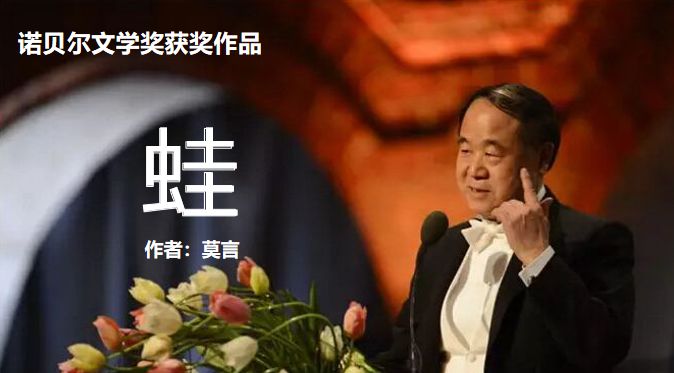 《蛙》是莫言酝酿十余年、笔耕四载、三易其稿,潜心打造的一部触及国人灵魂最痛处的长篇力作,这部小说以新中国近60年波澜起伏的农村生育史为背景,讲述了从事妇产科工作50多年的乡村女医生万心的人生经历,也反映出中国计划生育的艰难历程。小说秉承了作者乡土文学的一贯风格,以细腻的笔触、朴实的文字落脚于中国社会的一隅。2011年莫言凭借小说《蛙》获得茅盾文学奖,2012年获得诺贝尔文学奖。