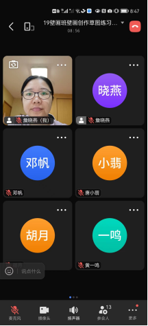 又例如:《壁画创作设计图练习》是四年级的一门新课程,由詹晓燕老师负责授课。该课程任务重,线上教学难度高:既是上一课程《城市壁画项目策划》的延续和深化,又是作为《毕业创作》前期基础的重要课程。课程要求在项目策划“实题”方案的基础上,以二维表达方式深化方案中壁画创作稿。画面要求等比例大尺幅,构图完整,刻画细致,可作为实施图引。