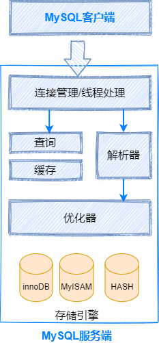 不管是使用图形界面还是命令行,我们接触到的都只是客户端,MySQL作为一个软件系统的架构,存储引擎在MySQL服务端系统架构的什么位置呢?