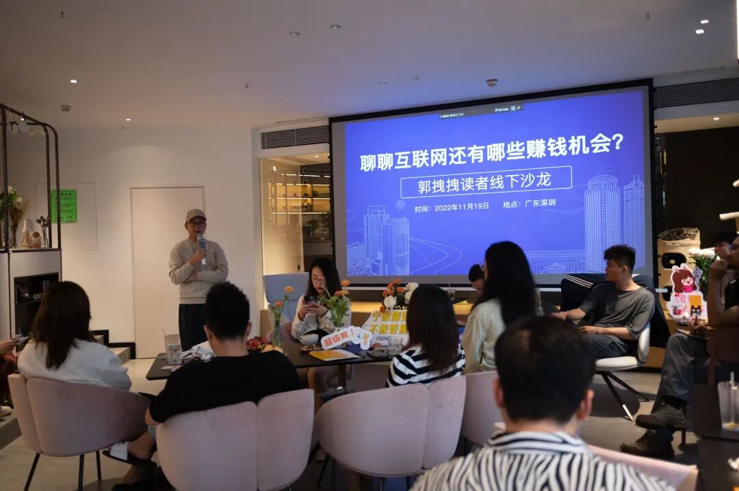比如下周可能会组织关于副业主题的线下交流会,到时候有深圳的读者,可以在我朋友圈报名参加。