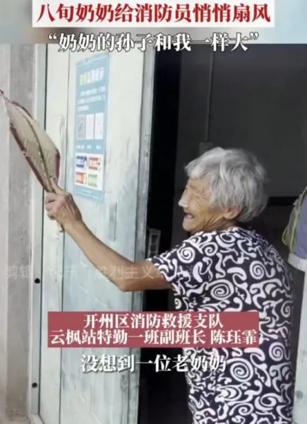 奶奶边扇边说:“这个消防员,年纪和我孙子一样大。”