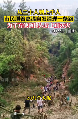 在高温之下,他们自发地帮助救援人员清理出一条道路,从最开始的20多人,一下子就发展到了上千人!