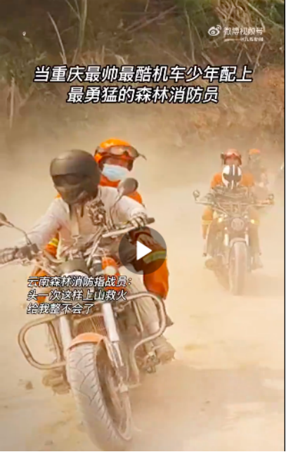 “山火救援需要人手,需要有越野能力的摩托车……”