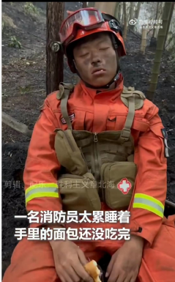 山火熏黑了他的脸,掩不住依然青春稚嫩的五官,令人忍不住泪目。