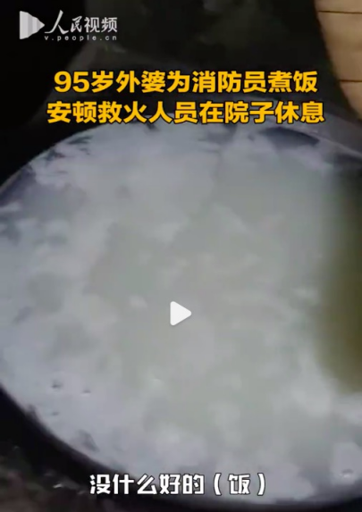 在这场救援中,我看到一个95岁的阿婆,深夜为消防员烧火煮稀饭,安顿他们在自己院子休息。