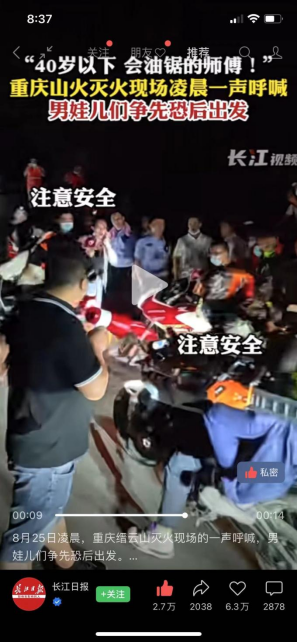而且最让人揪心的是,因为极端高温,草木干枯,重庆多处发生山火。