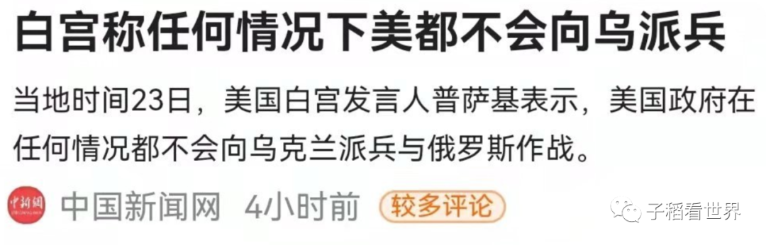 说不定,欧洲诸国的劳军慰问团已经正在前往乌克兰的路上。对于美国而言,反思21年的反恐战争,打一场代理人战争,一边大卖军火,一边开心发大财,还有什么比这更香的事呢?这场战争的经验教训,为我们的统一大业,提供了绝佳的教材!作者简介:子稻,前报社媒体人,每日解读财经热点、国际风云。文章视角刁钻,文笔犀利,剖析真相。作者微信公众号:子稻看世界(ID:zidao998)