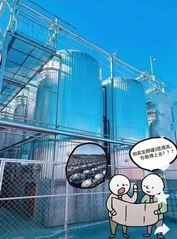 人家的发酵罐,有三层楼高,还都盖得严严实实。
