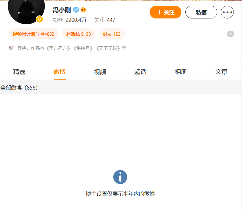 而与此同时,网友们忽然发现冯小刚的微博是空的。