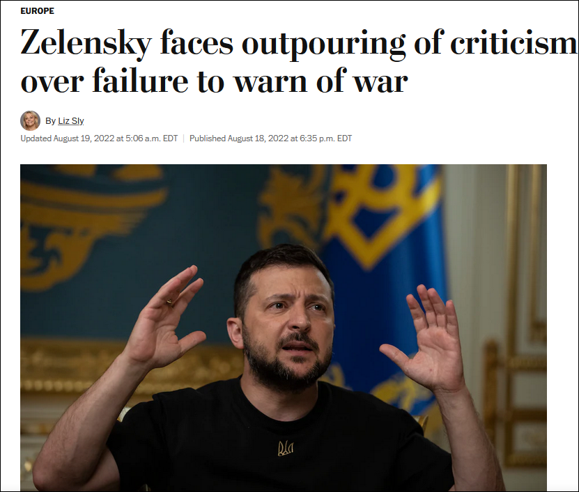 据美国《华盛顿邮报》8月19日报道称,泽连斯基近日接受该媒体采访时坦言,美情报机构在俄乌冲突爆发前曾向他发出预警,但他认为预警会引发社会恐慌,这会带来每个月高达70亿美元的经济损失,对社会稳定和政府运作造成严重冲击。泽连斯基认为,只有让乌克兰人留下来,才是击退敌人袭击的关键。