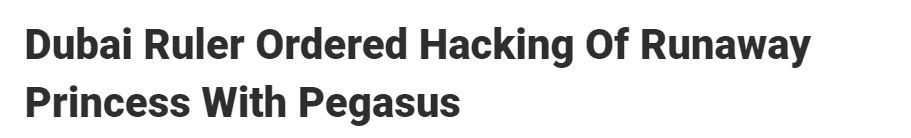 哈雅遭到了窃听、恐吓和威胁。哈雅与13岁女儿和9岁儿子时刻被前夫的人盯着。酋长让人传话:你和孩子将永不得安宁,还附上一首诗,标题是:你活过,你死了。除此之外,听证会收到大量证据显示,哈雅家里混入“间谍”,假装在庄园服务,其实在监视她活动,家里电话也被窃听。英国高等法院的家庭分庭庭长说:“在这种情况下,从花园或者是一条乡间小路上抢走孩子只需要片刻。在我看来,需要阻止父亲(酋长)或他的手下靠近母亲(哈雅公主)的房子是完全合理的。”为此,伦敦法庭出面在哈雅家周围建了100米的禁区,甚至还在上空也设置了1000英尺的禁飞区,以防谢赫派直升机来抢人。10月6日,英国伦敦高等法院称,为了打赢离婚官司,迪拜酋长穆罕默德竟“下令窃听其前妻约旦公主哈雅的电话,此举涉嫌干涉英国司法”。根据伦敦高等法院的裁定,监听事件发生在马克图姆与哈雅在伦敦打离婚官司期间。当时,哈雅、她的律师菲奥娜以及其他随行人员的手机,都遭到间谍软件“飞马”的入侵。法庭称,黑客成功地从哈雅公主的手机里窃取了大量数据。作为王室专属大律师,菲奥娜表示,如果不是英国前首相布莱尔的夫人切丽告诉她,她完全不知道自己和当事人哈雅公主的手机被入侵。没错,为菲奥娜提供证据的就是大名鼎鼎的切丽·布莱尔。据说,当年正是其丈夫托尼·布莱尔主政期间,停止了对2000年迪拜酋长女儿在英国失踪案的刑事调查,让莎姆萨失踪真相被掩埋了将近20年。