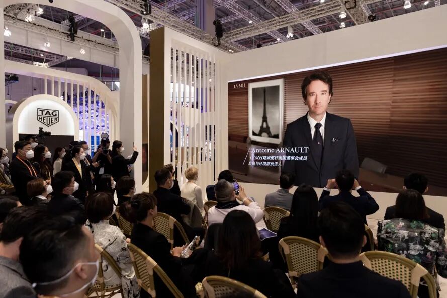 LVMH集团董事会成员、形象与环境部负责人Antoine Arnault在LVMH展厅作揭幕讲话。LVMH集团大中华区总裁吴越在 LVMH展厅作揭幕讲话。