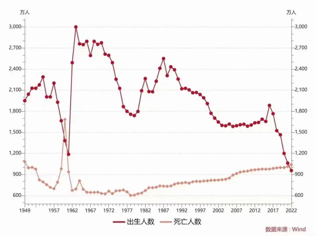 国家统计局数据显示,年末全国人口(包括31个省、自治区、直辖市和现役军人的人口,不包括居住在31个省、自治区、直辖市的港澳台居民和外籍人员)141175万人,比上年末减少85万人。全年出生人口956万人,人口出生率为6.77‰;死亡人口1041万人,人口死亡率为7.37‰;人口自然增长率为-0.60‰。