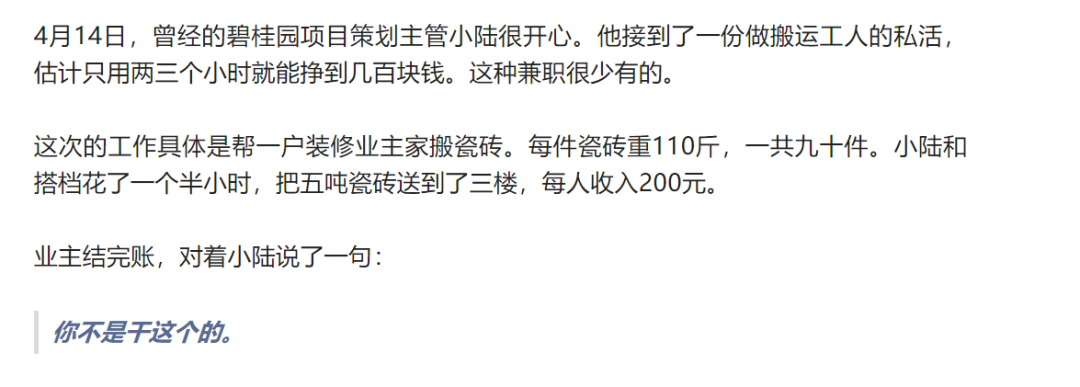 有位自媒体人分享了一位前碧桂园项目策划主管的真实经历。