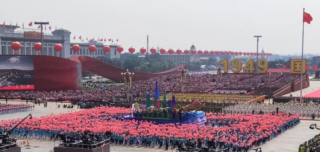 “春潮滚滚”方阵中,我们身着春意盎然的湖蓝色服装,手持象征着朝气和活力的桃花花束,伴随着《在希望的田野上》的优美旋律,簇拥着代表改革开放精神的彩车,热情洋溢地走过天安门广场,高喊“祖国万岁”的口号,以饱满激扬的精神面貌接受祖国和人民的检阅。