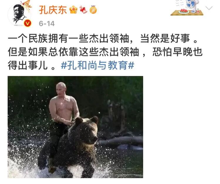 客观来讲,孔庆东这段(普京骑熊)图文有毛病吗?也没有。