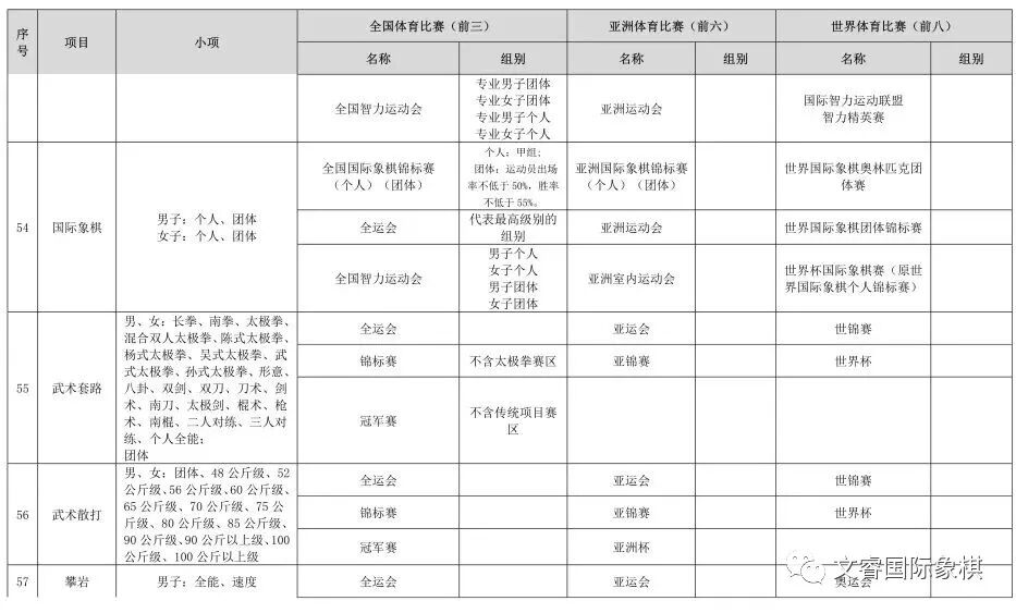 小编在这里将2023年符合运动员保送条件的竞赛项目及赛事表中