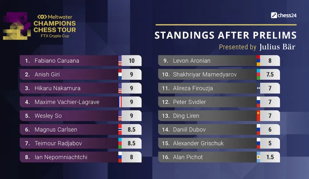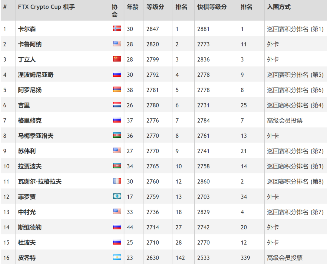 FTX Crypto Cup 锦标赛是Meltwater 冠军巡回赛第六站比赛,云集了16位高手参赛,世界排名前十的棋手悉数亮相。比赛总奖金为32万美元,其中包括赞助商 FTX 提供的价值 10 万美元的比特币奖励!