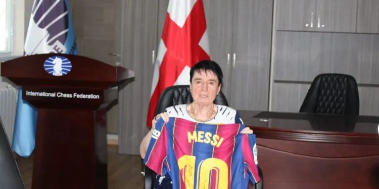 国际棋联消息,世界足球巨星莱昂内尔·梅西日前向五届女子国际象棋世界冠军诺娜·加普林达什维利赠送了一件亲笔签名的球衣,作为其八十岁生日礼物。