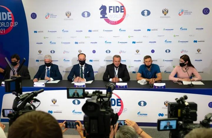 国际棋联主席阿尔卡季·德沃尔科维奇、克拉斯诺达尔边疆区体育部部长阿列克谢·切尔诺夫、索契市副市长弗拉基米尔莫洛佐夫、俄罗斯国际象棋联合会执行董事格鲁霍夫斯基,以及2015年世界杯冠军卡尔亚金出席了新闻发布会。