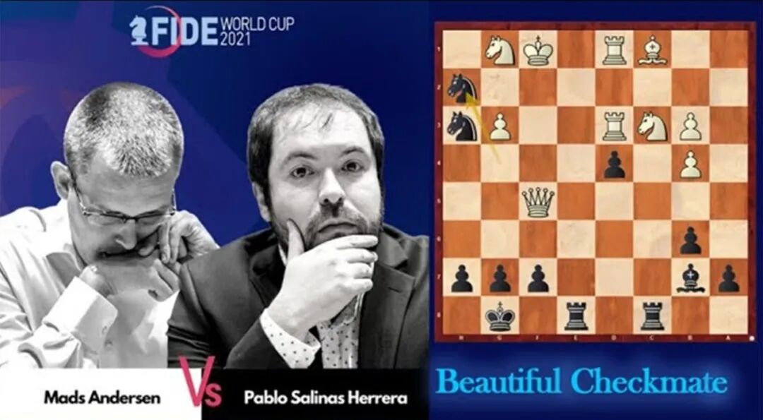 国际棋联世界杯赛首轮,智利特级大师萨利纳斯(2514)以1胜1和淘汰丹麦特级大师安德森(2579)。在首盘慢棋赛中,萨利纳斯执黑妙杀对手,被认为是本轮最佳对局。