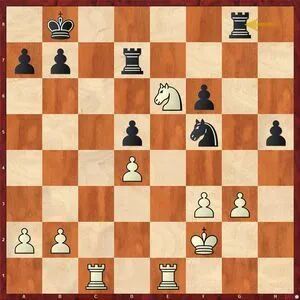 白方如果走很自然的 32.Rf6,将是均势。但拉戈诺求胜心切,漏看了黑方可怕的打击!