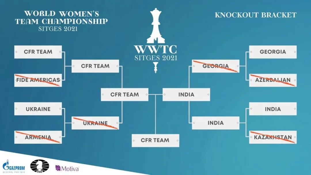 决赛中,面对阵容强大实力均衡的俄罗斯队,印度队尽管斗志昂扬,但仍没有占得任何便宜。俄罗斯队以2.5比1.5和3比1连胜两场。