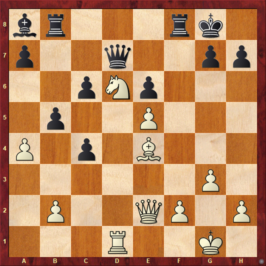 此后的战斗出现了转折。形势不错的卡尔森出现了漏算,遭到了涅波的反击,被迫弃掉半子……此时卡尔森不但少一兵,而且还少半子。