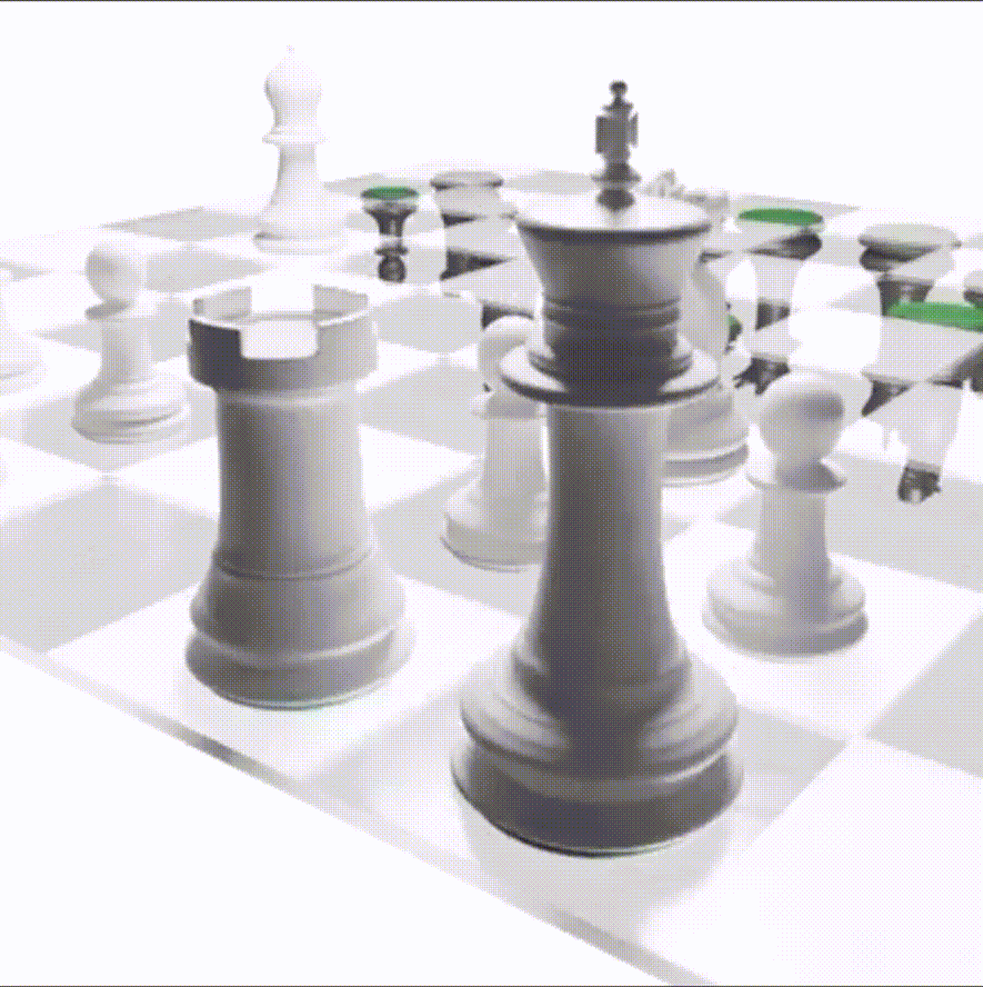 在这个 NFT 的展示中,白方子力全部朝上,位于棋盘上方。而黑方子力则全部朝下,位于棋盘下方。观看时可以翻转棋盘。