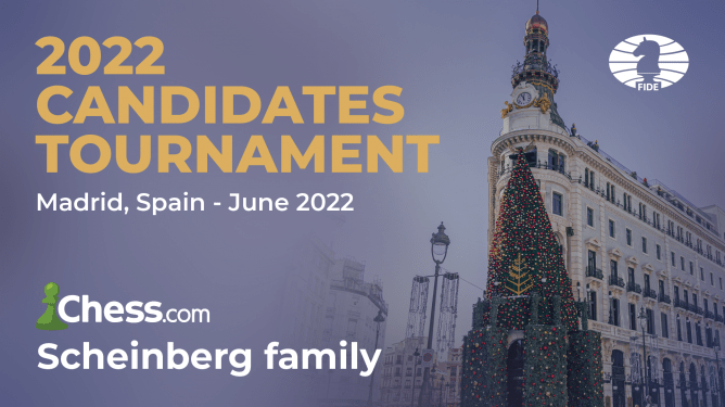 12月28日,国际棋联在官网宣布,2022年男子世界冠军候选人赛将于2022年6月在西班牙马德里举行。国际棋联、网络平台chess.com,以及候选人赛赞助商Scheinberg家族已于本周一(即12月27日)签署了协议。