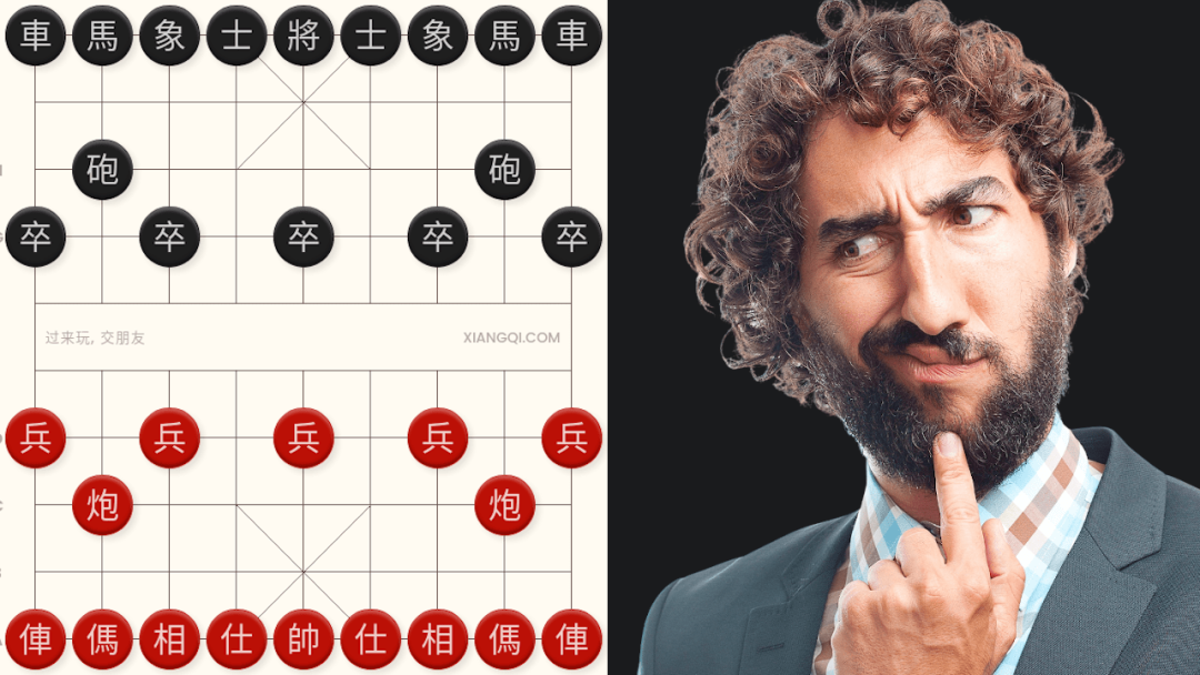 当然,中国象棋也有灵动应变和因势利导的智慧风采深藏其中。炮是中国象棋独有的棋子,正常行动时走直线,吃子时需要前方间隔一个棋子当“炮架子”才能迸发隔山打虎的神力。直线行隔子吃的走法决定了炮在不同行动目标策略中游走,平常时放对位置,进攻时聚焦找“炮架子”发挥叫吃威胁。